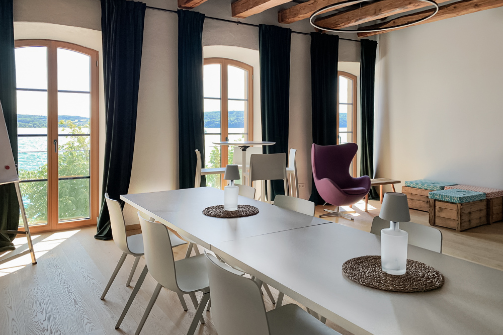 Edler Veranstaltungsraum mit See- und Alpenpanorama